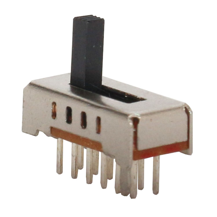 Slide Switch Main data Rating:DC 50V 0.3A~1A ContactResistance:< 100 mΩ InsulationResistance:≥ 100 MΩ Withstand Voltage:500V AC for 1 minute Operating Force:180~500gf Life cycles:10000次 Operationg Temperature:-16℃to+60℃ Storage Temperature:-40℃to+85℃ Complies with:RoHs&Reach