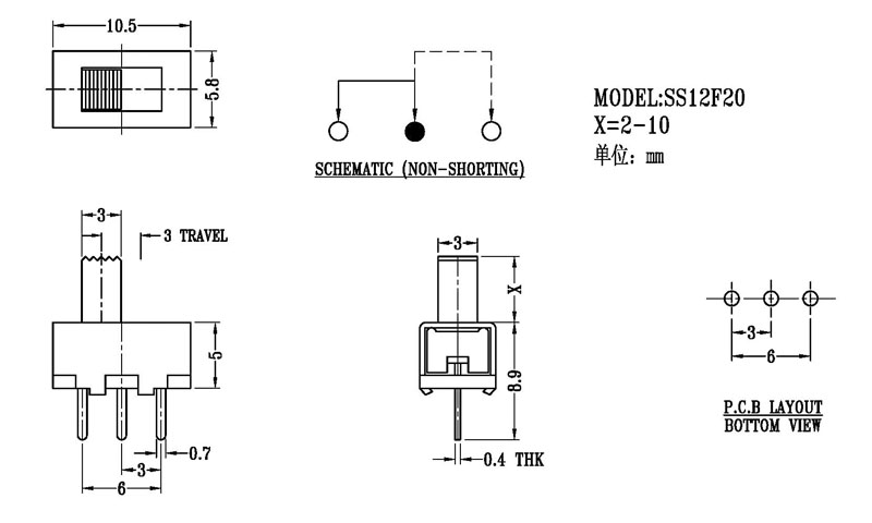 正拨拨动开关主要技術參數 使用功率/額定值:DC 50V 0.3A~1A 觸點電阻:< 100 mΩ 絕緣電阻:≥ 100 MΩ 耐壓:500V AC for 1 minute 撥動力:180~500gf 使用壽命:10000次 操作溫度:-16℃to+60℃ 儲存溫度:-40℃to+85℃ 符合標準:RoHs&Reach